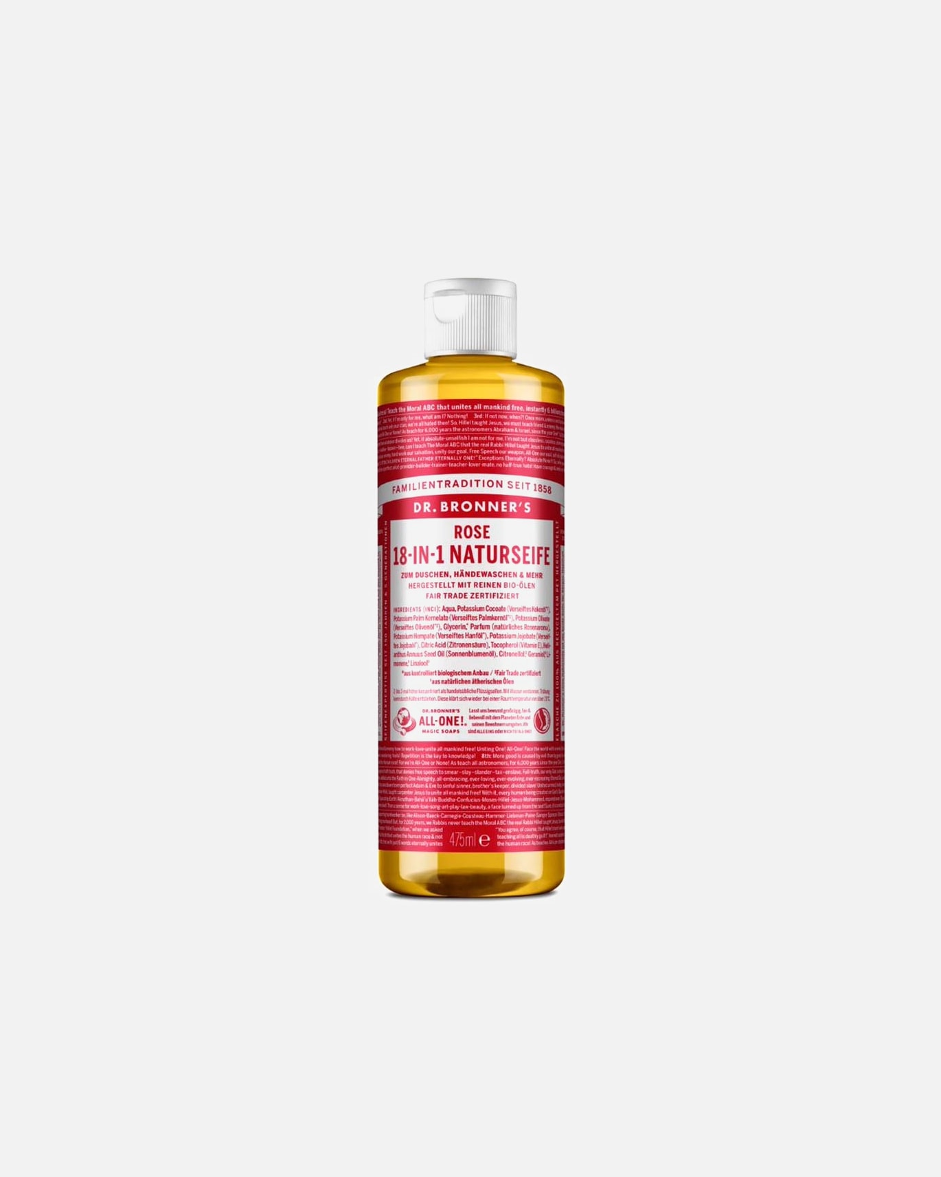 Warum ist Dr. Bronner´s so beliebt? Die Seifendynastie ist seit jeher in Familienhänden und weltberühmt für Dr. Bronner´s Seife. Mit ihrer Ware kaufst du auch ihre Message. Dr. Bronner´s Inhaltsstoffe sind umweltfreundlich und aus biologischem Anbau. Die Artikel enthalten keine Verdickungsmittel oder synthetischen Schaumbildner. Besonders Allergiker und Menschen mit empfindlicher Haut profitieren davon und Dr. Bronner´s Naturseife bedenkenlos nutzen. Der pH-Wert der Produkte ist an die Haut angepasst und der Handel erfolgt fair. Ein Großteil der Umsätze setzt Dr. Bronner´s für wohltätige Zwecke ein. Dabei verwendet die Marke natürliche und wohlriechende Produkte aus der Natur. Für blumige Noten sorgen Dr. Bronner's Rose - und Lavendel-Nuancen. Wohltuend für die Haut und angenehm süßlich wirkt das Dr.-Bronner-Mandel-Extrakt. Auch fernöstliche Aromatik aus Eucalyptus, Green Tea, Shikakai oder dem Teebaum greift Dr. Bronner´s auf. Die Kombination Patchouli Lime betört die Sinne in besonderem Maße.