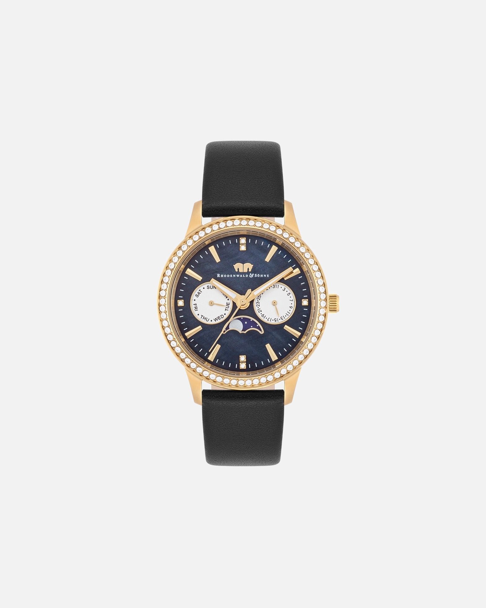 Die Brand begeistert mit einer breitgefächerten Produktpalette an Damen- und Herrenuhren. Das Sortiment umfasst sowohl klassische Modelle in Gold und Silber als auch extravagante Armbanduhren. Rhodenwald & Söhne Uhren mit hochwertigen Lederarmbändern schmiegen sich angenehm ans Handgelenk. Kontrastierende Zifferblätter sorgen für einen aufregenden Eyecatcher-Moment. Die sportlichen Ausführungen haben zusätzliche Features wie Datumsanzeigen und Stoppuhren – und begleiten dich so zuverlässig durch den Alltag. Mit Kristallen verzierte Damenuhren von Rhodenwald & Söhne wirken besonders glamourös und veredeln jeden Look.