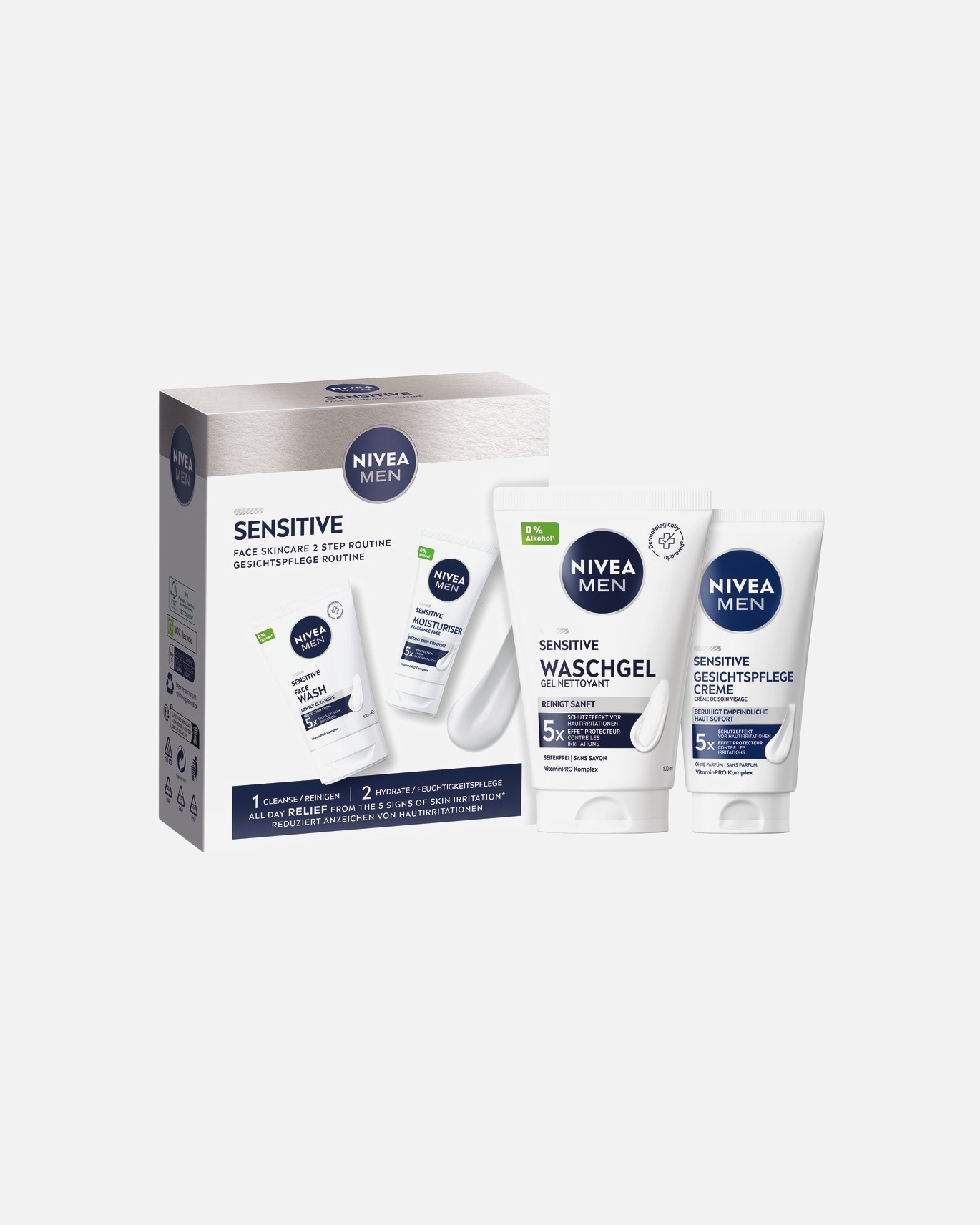 Bartpflege-Set aus mehreren Pflegeprodukten sind mit ihren Wirkstoffen und Düften perfekt aufeinander abgestimmt. Ob von der Lieblingsmarke oder von einem trendigen neuen Produkt – die harmonische Zusammenstellung trägt zu einer perfekten Rasur bei. Während Rasierschaum oder Rasiergel die Haut beim Rasieren wie ein Schutzfilm vor Irritationen und Schnittwunden schützen, beruhigt und vitalisiert das Aftershave die Gesichtshaut.